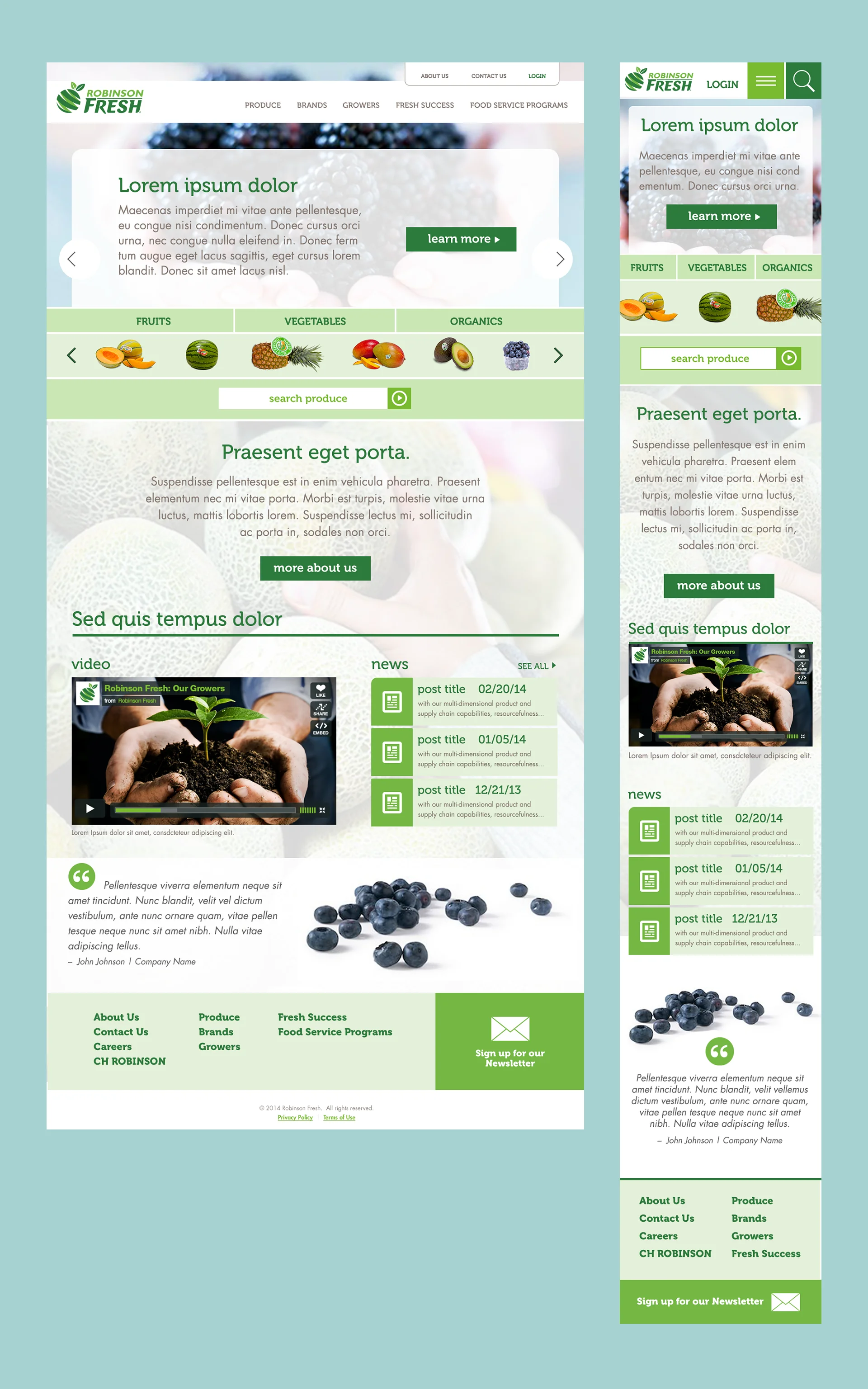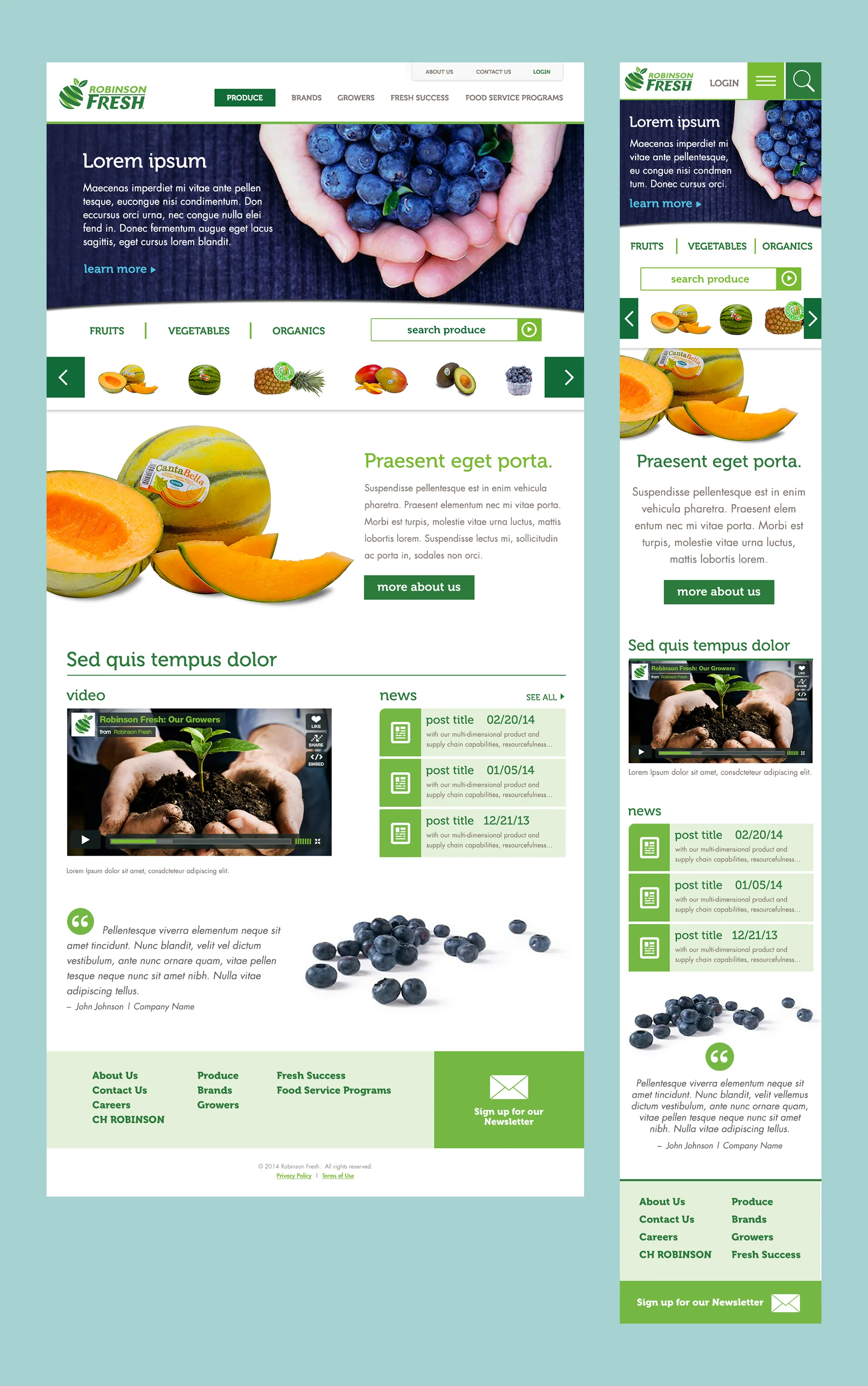 Designed and directed original creative concepts for mobile + responsive design: Interactive, tablet and mobile, highlighting the farm to table product cycle of their fresh vegetables and fruits.